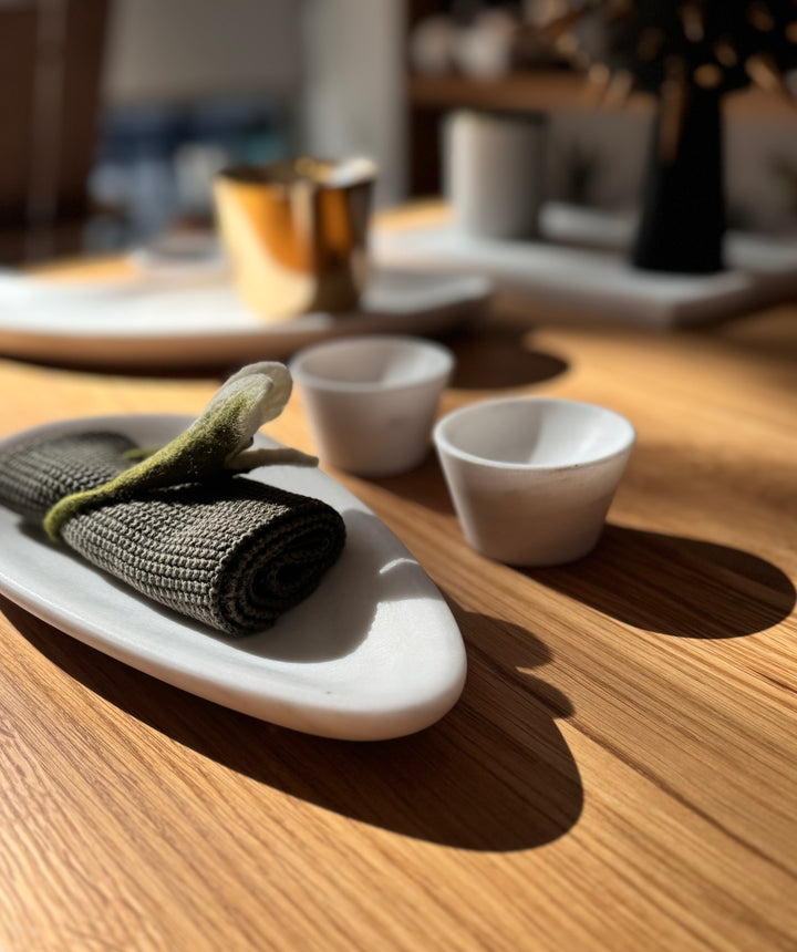 Thanks to a special coating, our platters and bowls are not only stunning decorative objects but also safe for serving food. Durable, antibacterial by nature, and endlessly stylish, they elevate both your table and your home.