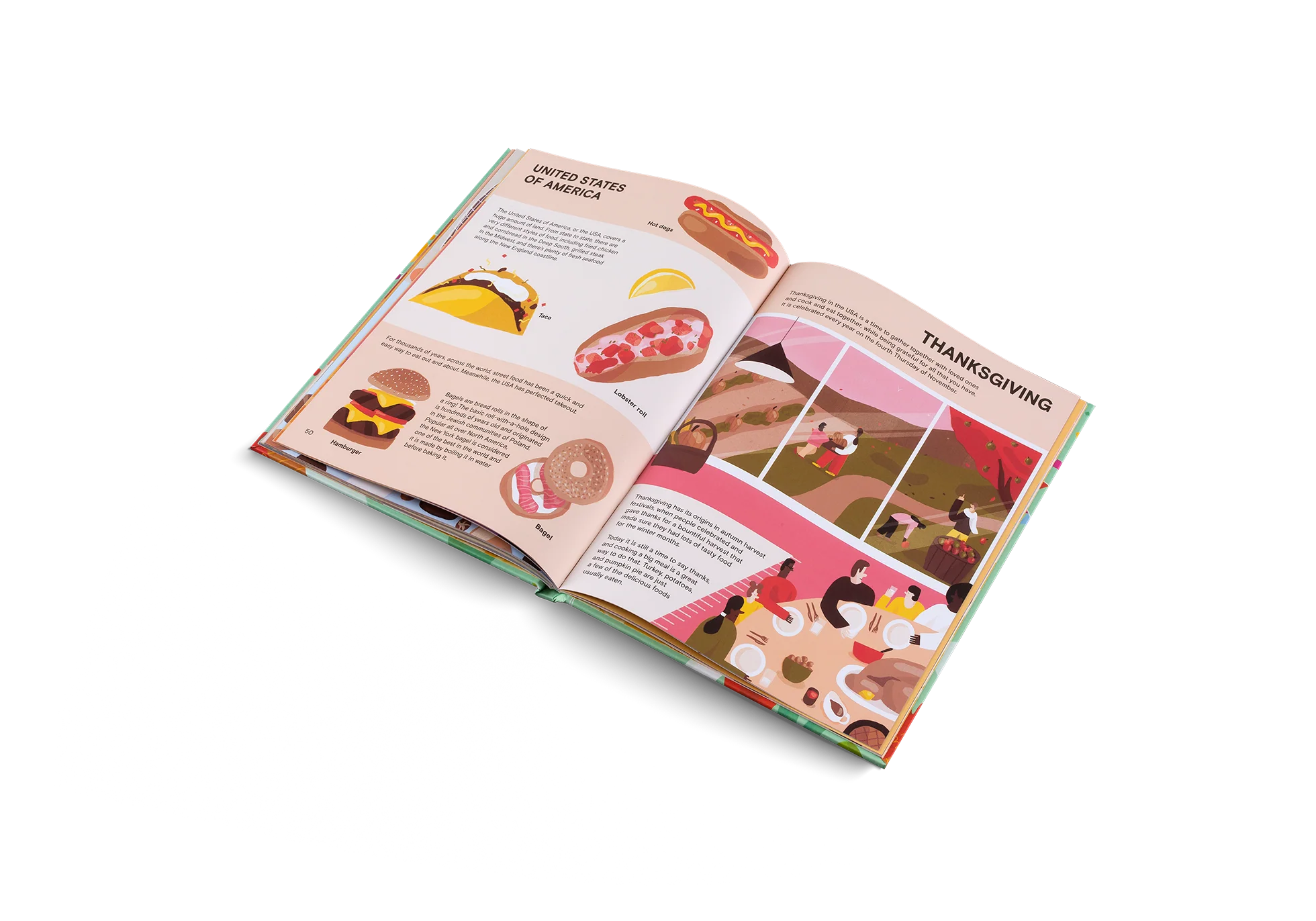 A joyful journey where food and festivals unite us all in exciting, delicious celebrations! From Thanksgiving in America to the Japanese cherry blossom festival, A Taste of the World takes young readers on an exciting journey through the flavors, dishes, and traditions that make each culture unique. With a blend of fun facts and vibrant illustrations by Beth Walrond, this book explores how food connects us across the globe, from the heartwarming meals shared on special occasions to the everyday ingredients that bring us together. Along the way, readers will discover the stories behind global festivals and learn about the diverse ways food plays a central role in cultures, creating a world of flavor to explore and enjoy.