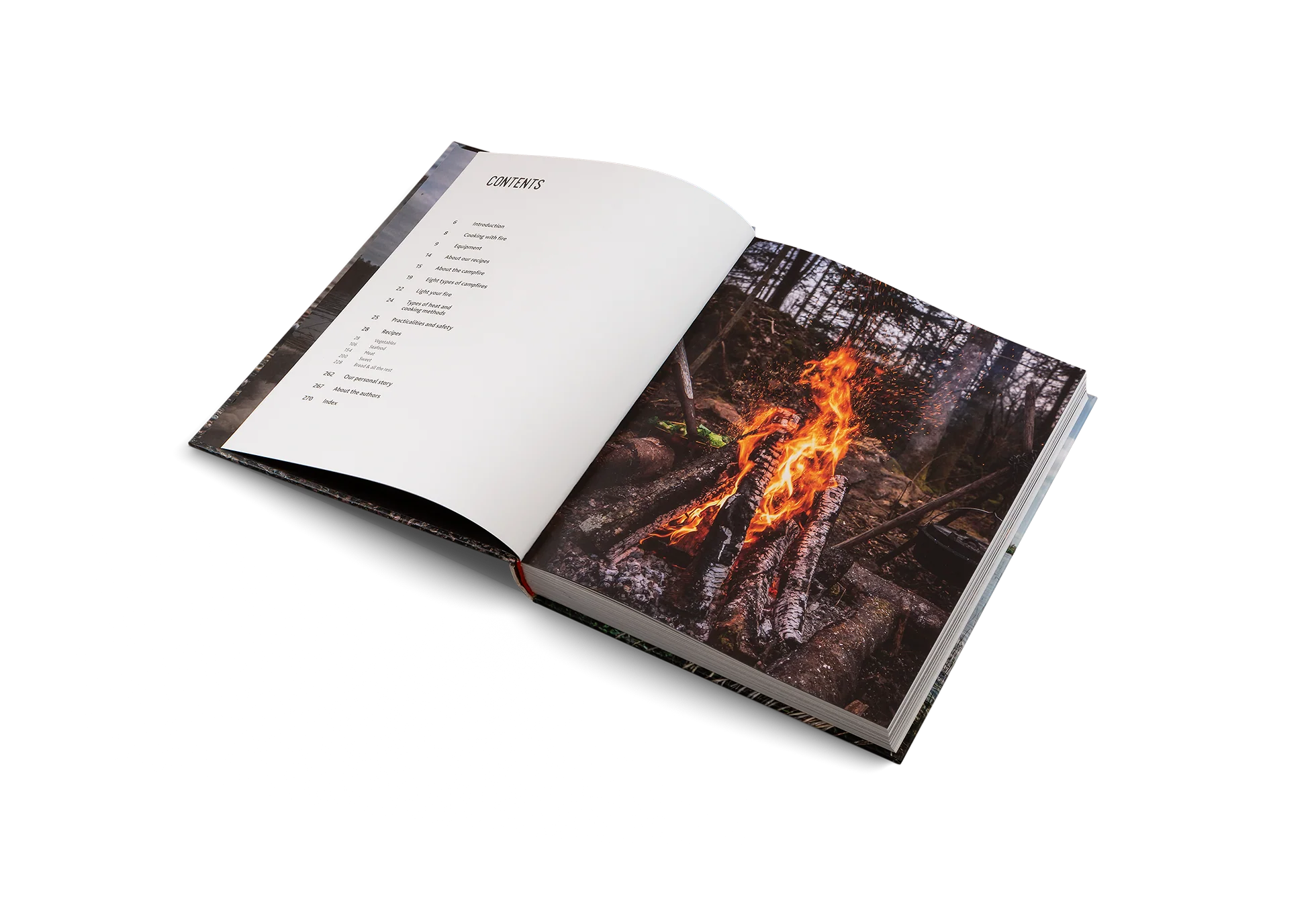 Cooking on Fire is full of delicious firecooked recipes requiring varying degrees of effort. It teaches you how to build and light campfires, different campfire cooking techniques, the equipment you will need (if any), and everything else you need to know.