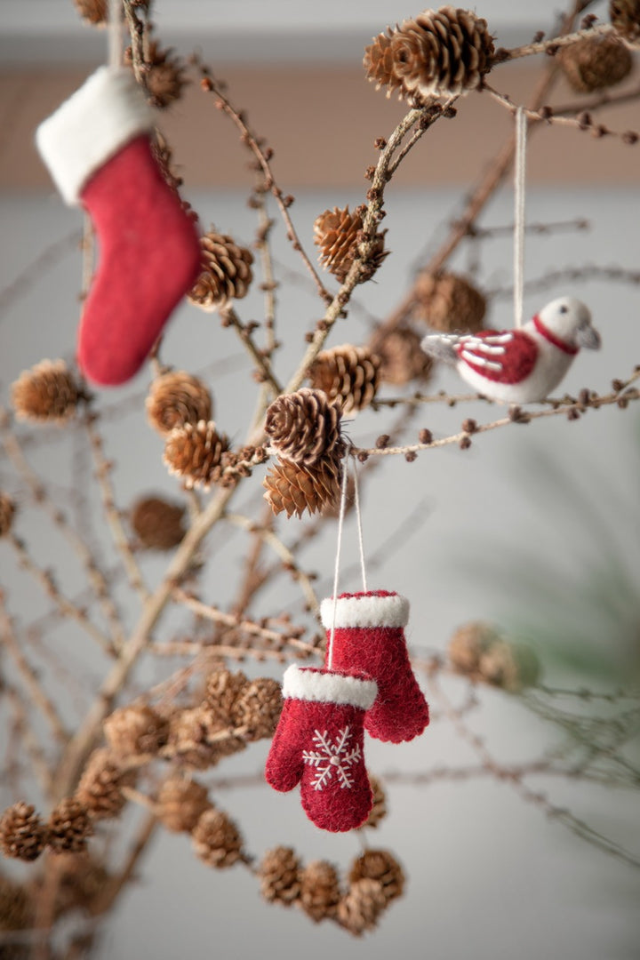 A cosy grey stocking, a minimalist yet charming touch for your Christmas decor. Perfect for a subtle festive accent. The felt hanging decoration measuring 8cm x 7cm.