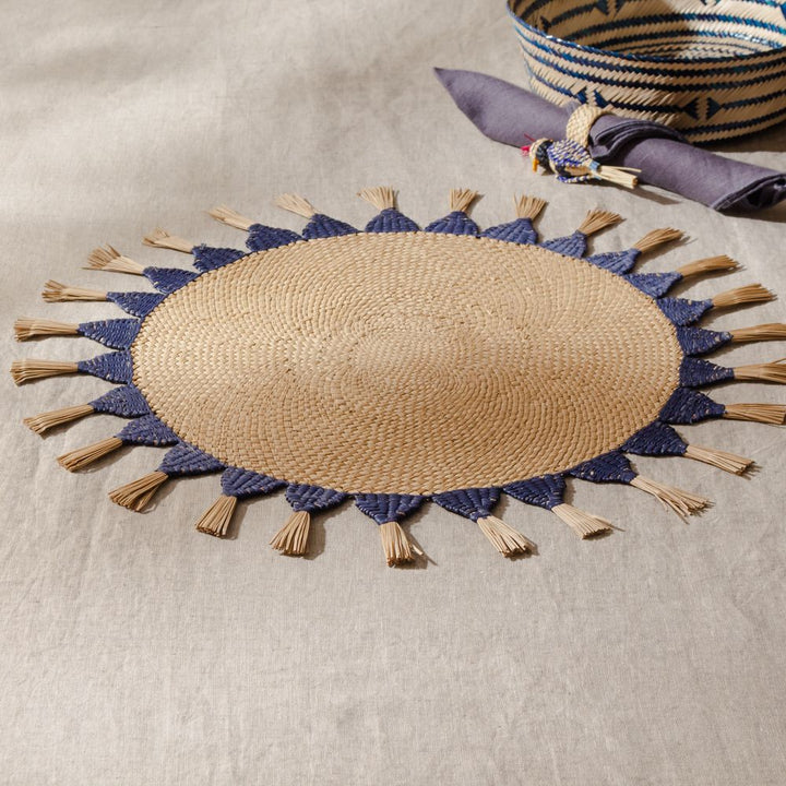 GUANABANA Celine centerpiece round Placemat | toast & petrol blue