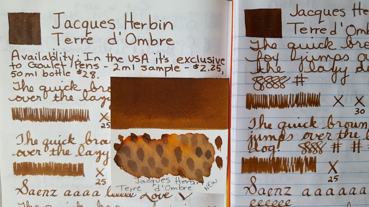 Jacques Herbin Terre d’Ombre is a brown, burnt earth color ink, adorned with fallow tones as well as reddish highlights. Beautifully intense, Terre d’Ombre is a sophisticated and warm writing ink.