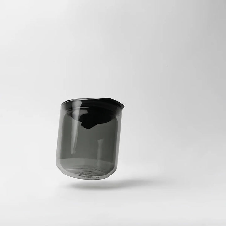 The lid's concave design and the jar's recessed bottom facilitate easy stacking of various items like coffee beans, pasta, snacks, and more. It holds about half a pound of coffee beans. Available in matte black and clear. The black version is perfect for ingredients requiring protection from direct sunlight.