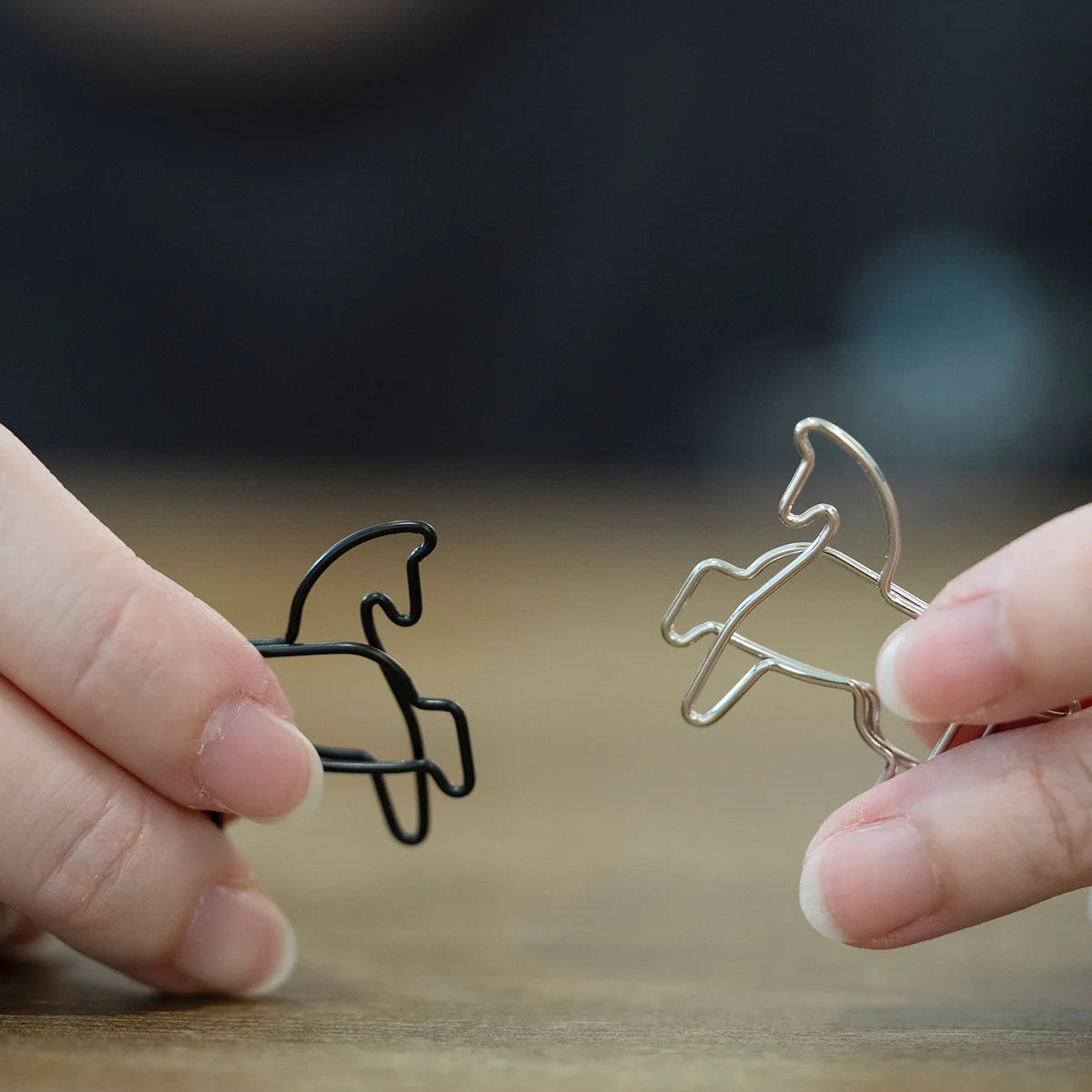 Made of stainless steel with a smooth, rounded form that won’t tear paper. Compact and versatile, it works as both a clip and bookmark—organizing documents while adding a touch of charm. Avoid excessive bending to maintain shape.