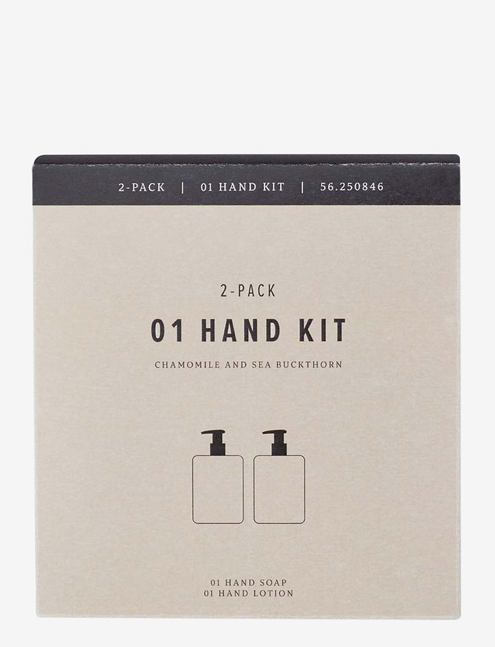 In the hand care kit is the 01 hand soap and the 01 hand lotion, both in 300 ml. The delicate, 01 hand soap is enriched with macadamia oil and panthenol, which are especially helpful for irritated and dry skin. The 01 hand lotion is enriched with macadamia oil, shea butter and apricot oil, which help heal, moisturize and protect your skin.
