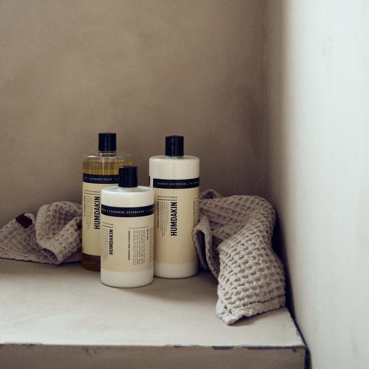 The fabric softener protects the fibers in the fabric and helps your favorite items stay soft after every wash. The fabric softener has a delicate scent that matches the Humdakin Laundry Soap.