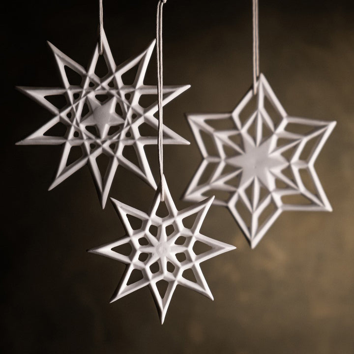 Handmade star ornament from the finest unglazed bone china.   Three  different sizes and styles.