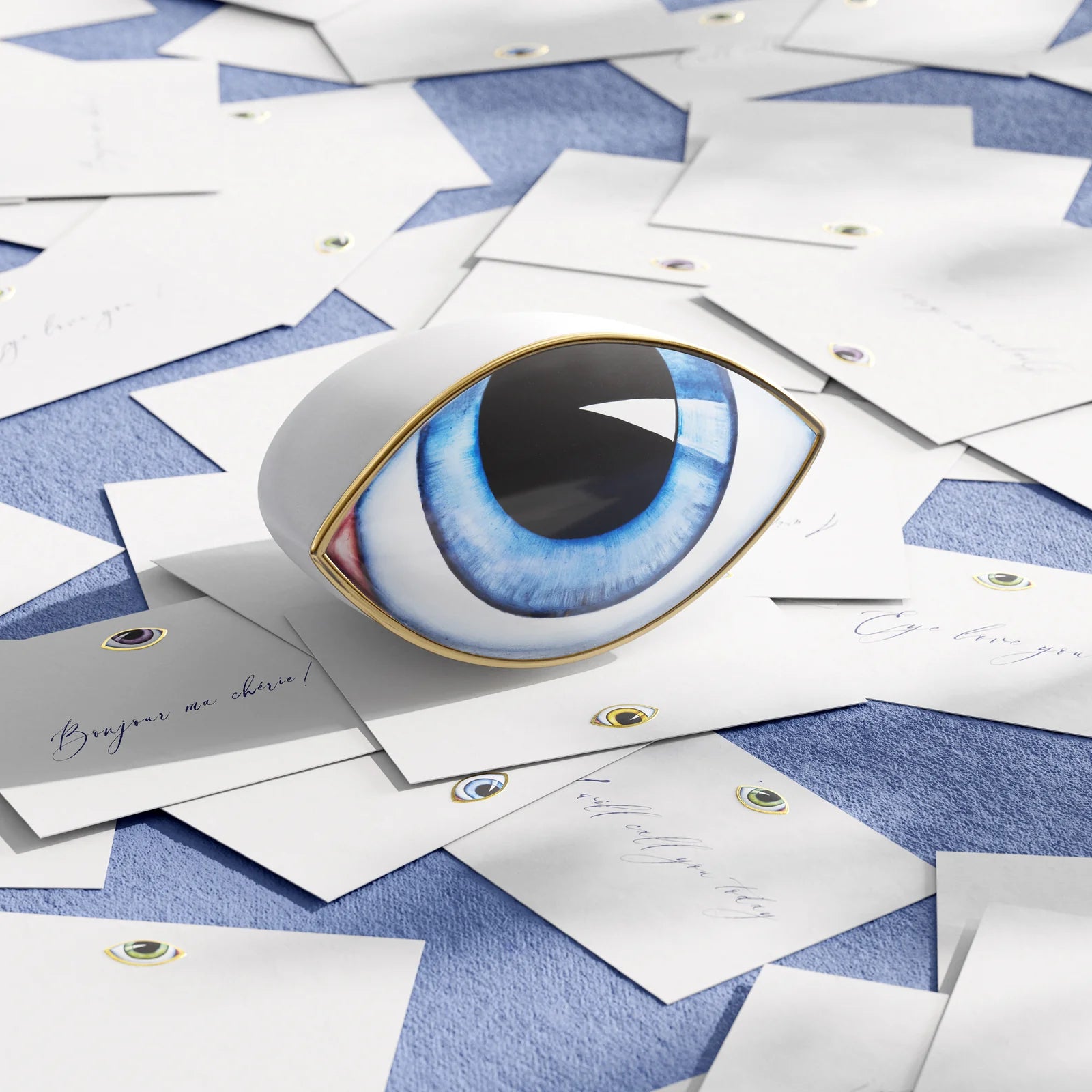 L’Objet + Lito is a collection typified by the use of the eye motif mixed with the finest materials. Whimsical and surreal, this oversized paperweight is handcrafted from porcelain and 24K gold.