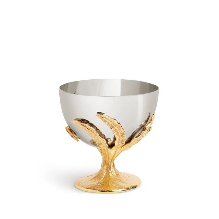 An ensemble of eight pieces that embodies elegance and craftsmanship. Each piece, meticulously crafted from stainless steel and adorned with 24k gold-plated accents, features a dynamic hand-sculpted fern motif showcasing the unparalleled talent of our master craftsmen. Including three sizes of trays, two sizes of big bowls, a champagne bucket, a pitcher, and two sizes of small bowls, the Fern Collection merges durability with opulent sophistication, transforming any dining experience into a celebration of refined luxury.