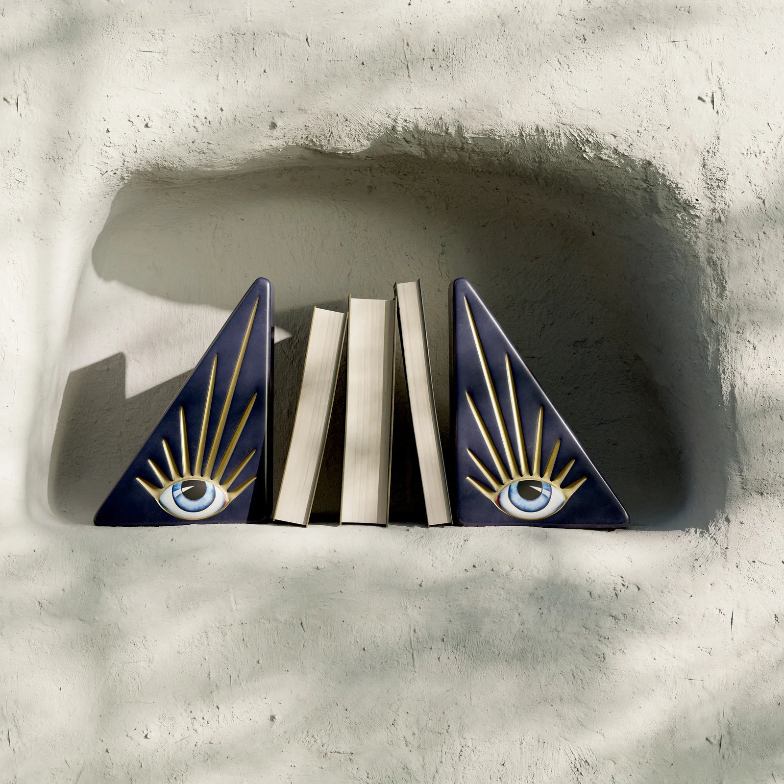 A surrealistic “talisman” of good luck and a traditional symbol of protection, the eye serves as a constant reminder to be aware, and to seek beauty in the everyday. This whimsical and luxurious design for the library is hand-crafted from porcelain.
