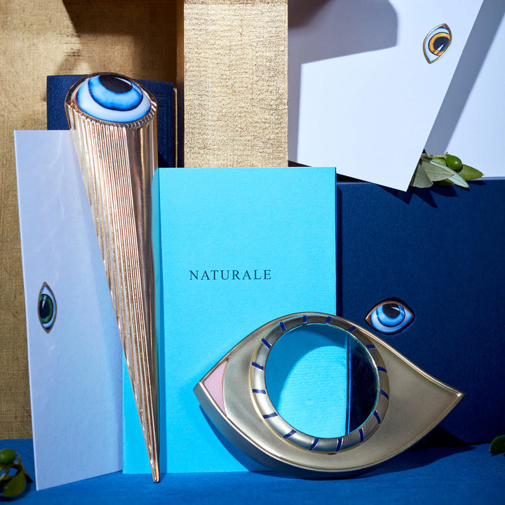 L’Objet + Lito is a collection typified by the use of the eye motif mixed with the finest materials. Whimsical and surreal, this desk accesory is handcrafted from brass, outfitted with glass with 7x magnification and inlaid with resin lash details.