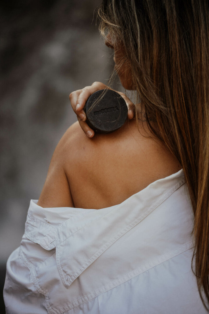 Activated charcoal and propolis are combined perfectly with rosemary and mint, offering a fresh, woody, refreshing scent. This soap acts against the oiliness of the skin, contributes to the treatment of acne and is also a powerful tonic for the skin. Ground coffee beans gently exfoliate, improve skin elasticity and condition the skin. Removes excess oil from oily skin while deeply nourishing dry skin. Soap up and rinse well. Keep the soap dry after each use.