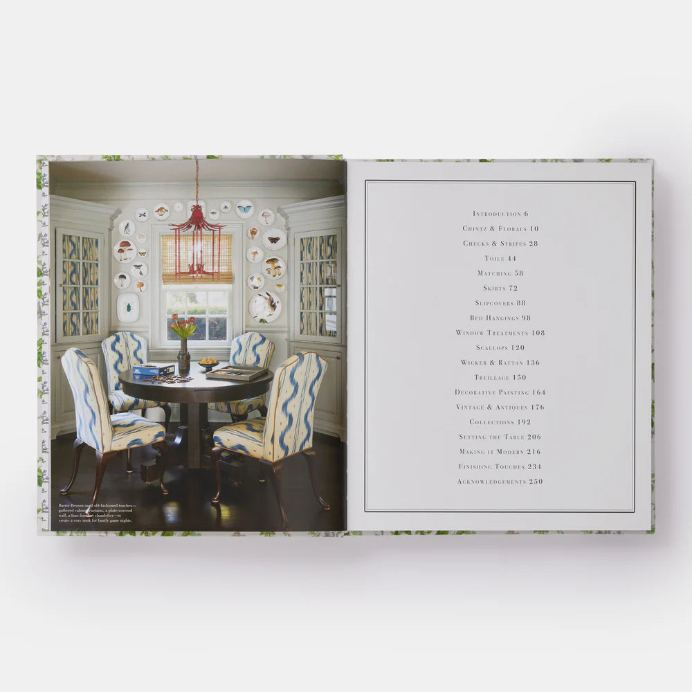 Chapters comprise visually exuberant explorations of topics such as chintz & florals, wicker & rattan, bed hangings, skirts, decorative painting, treillage, collecting, table settings, and more.