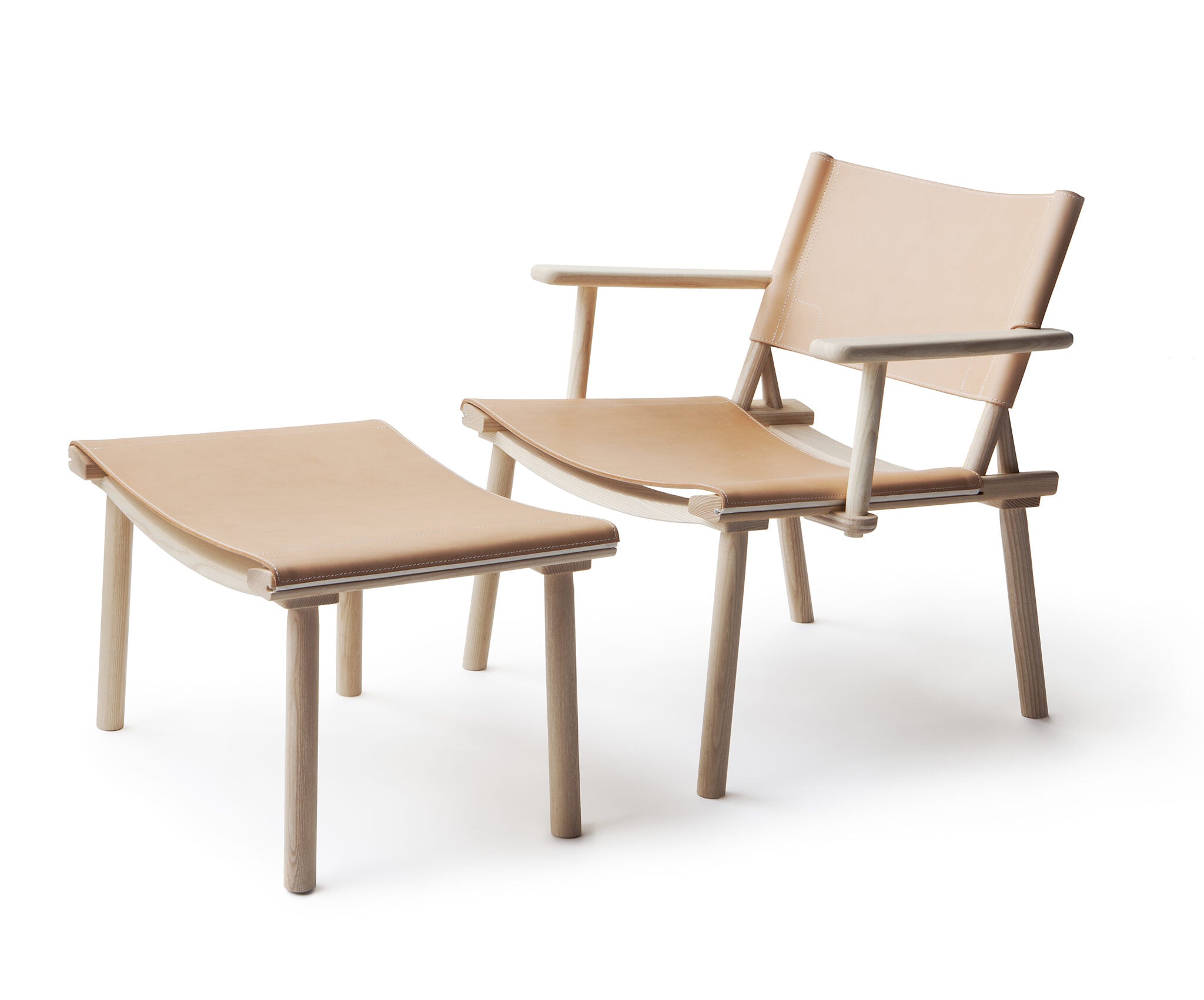 The December ottoman is composed of a carefully balanced solid wood frame and an upholstery in strong, natural materials. The frame is available in oiled ash and oak – also available: oak with smoked oak stain – and the upholstery options include traditional linen canvas and natural-tanned leather in black, nude or cognac.