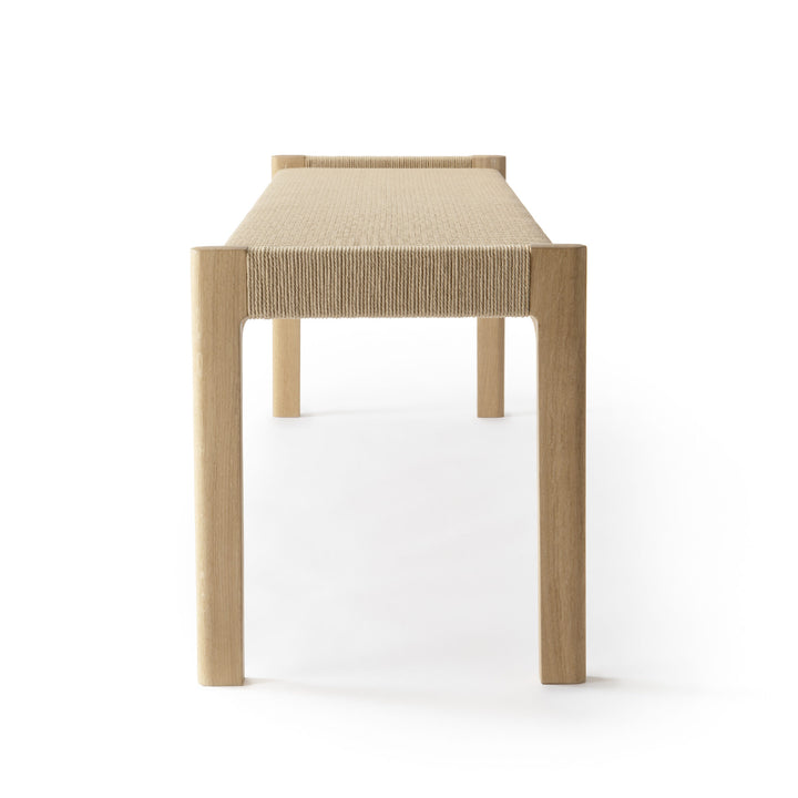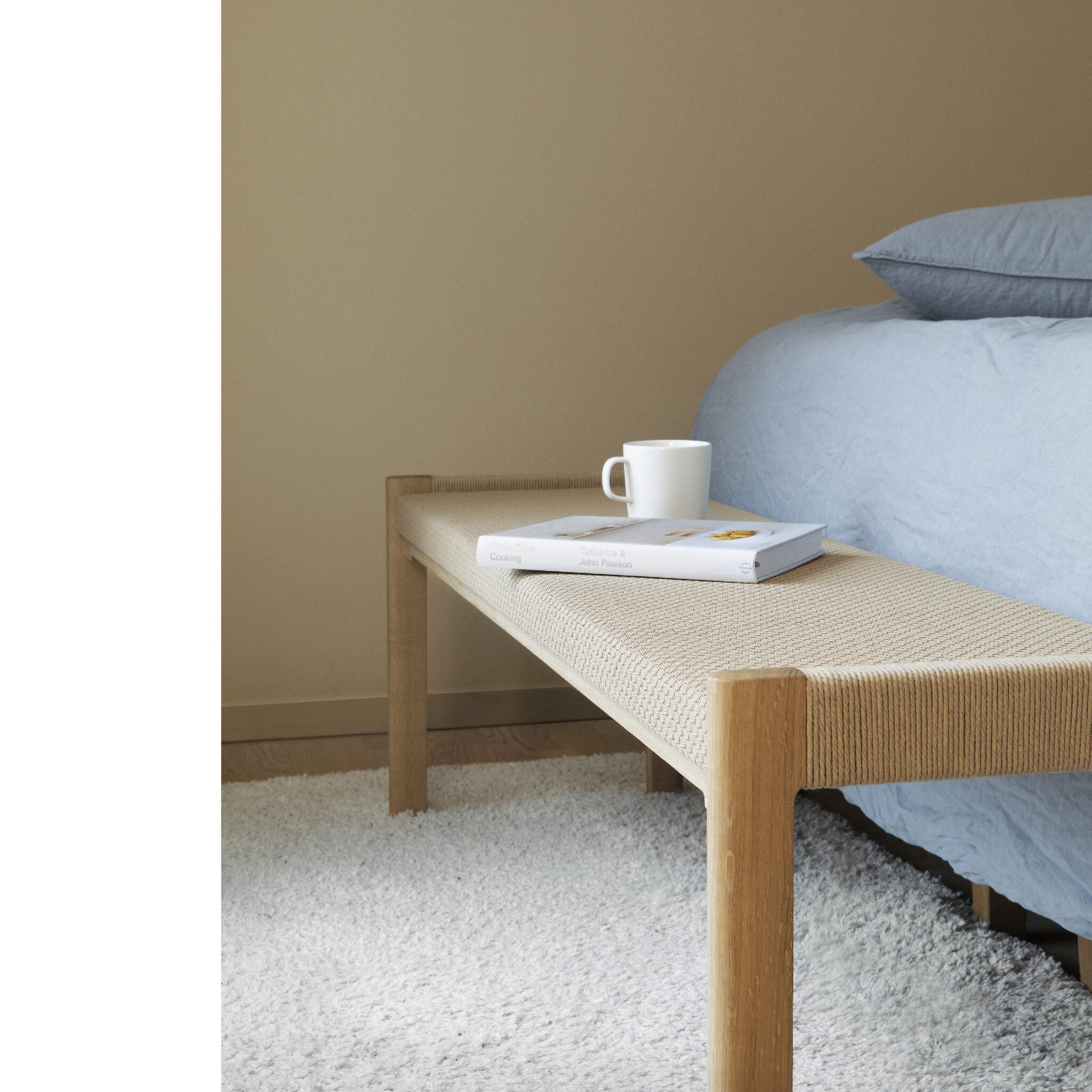 Detalji (“detail” in Finnish) bench is made following the traditional Nikari craftsmanship solutions, accompanied with delicate Woodnotes paper yarn fabric “Woodpecker”, designed by Ritva Puotila. The paper yarn is also used separately at the ends of the bench. The bench is available in two different lengths: 1510mm or 1000mm.