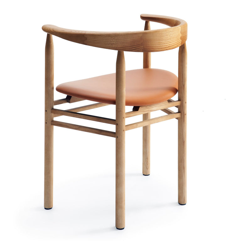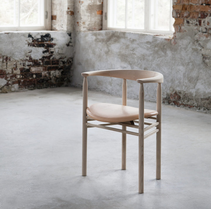 The Linea chairs are characterised by sleek, soft curves and traditional joinery. The frame is made using mortise joints secured with wooden nails, which function both as structural support and aesthetic elements. You can use the chair as an individual side chair or in larger groups, for example in dining or meeting rooms.