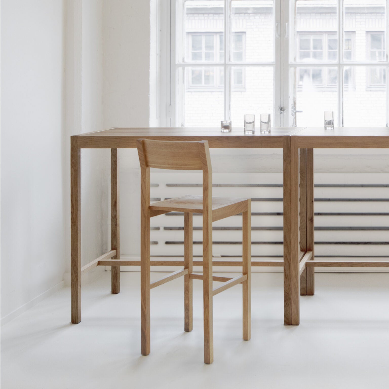 Seminar KVBT1 is a clear formed bar chair for commercial as well as private spaces. The whole chair is made of solid Oak wood and the seat can also be ordered upholstered with the desired fabric.