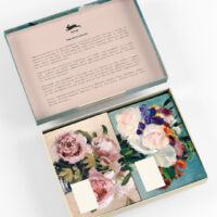 Each box contains 10 sheets of 4 different designs (printed on one side), making up 40 sheets of A5 writing paper (150x210mm/6”x8¼”). Included are 20 matching envelopes (10 x 2 designs), 8 greeting cards (2 x 4 designs) and 30 assorted stickers and labels.