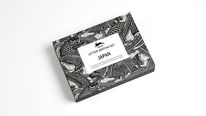 The Letter Writing Set box contains 10 sheets of 4 different designs (printed on one side), so 40 sheets in all of A5 writing paper (150x210mm/6”x8¼”). Included are 40 matching envelopes (20 x 2 designs) and 50 assorted stickers and labels. Sheets, envelopes and stickers can be used in combination or independently.