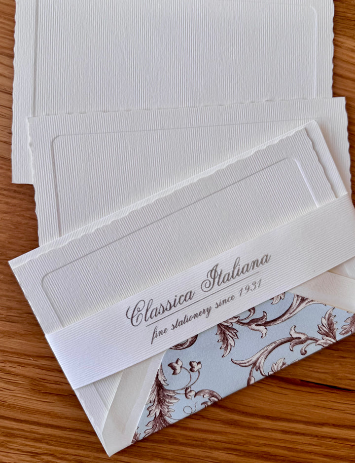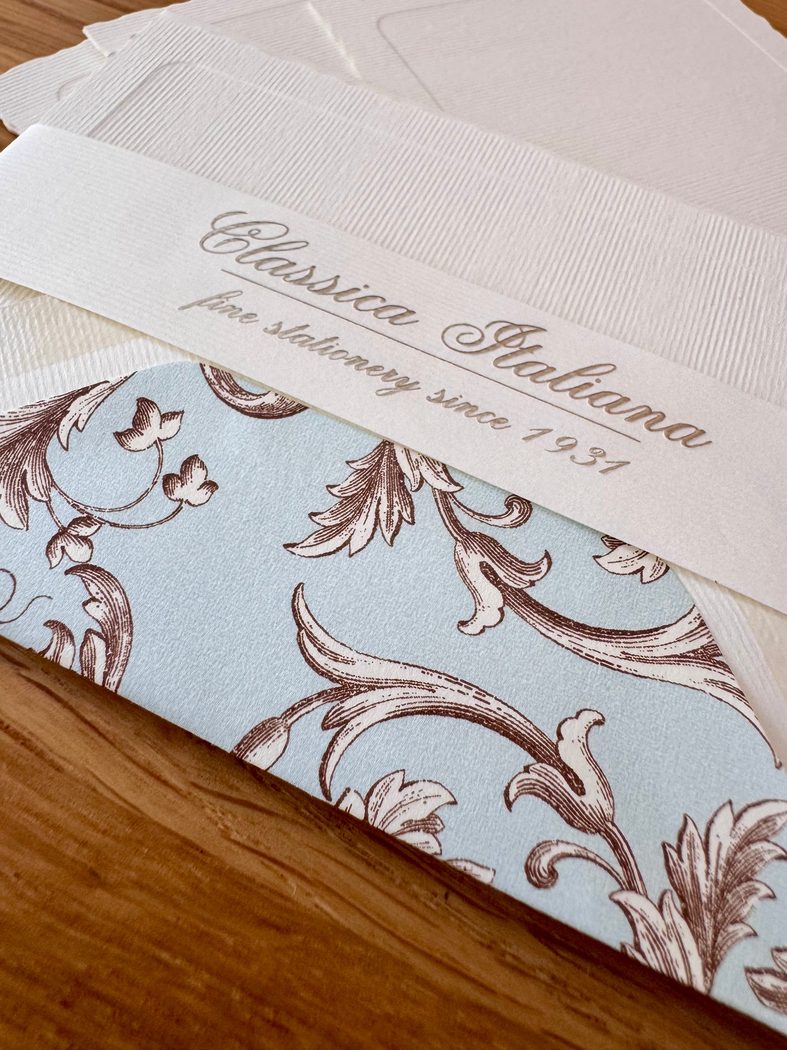 The entire collection is made with traditional letterpress printing machine. These unique italian designs are printed on high quality soft paper. The elegance and charm of this ancient type of printing makes this collection of cards distinctive and unique. All the designs are enriched with hot gold foil.