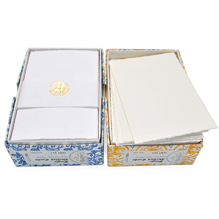 Fine selection of cards with deckled edge. The feathery edge is the result of sheets being naturally and carefully torn.