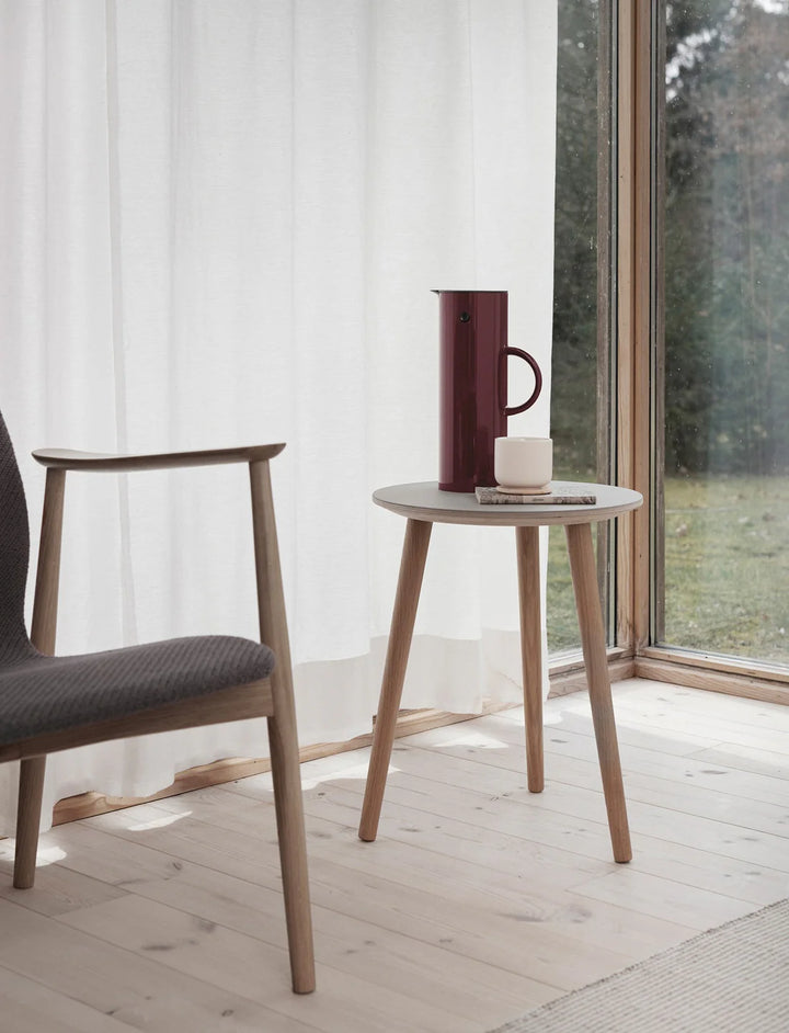 The EM77 vacuum jug is a recognised design icon made in Denmark since 1977 in more than 100 different colours. The elegant vacuum jug is composed of equal parts perfect shape and perfect functionality and is exhibited at museums around the world. EM77 features a glass insert that keeps the liquid hot or cold for hours. EM77 was designed to last a lifetime, as all the components can be replaced if they should break. This extends the service life of the thermos, thereby benefiting the environment. The vacuum jug’s unique tilting top enables serving with just one hand. The jug also comes with a handy screw cap, which is ideal if you want to take the jug outdoors.