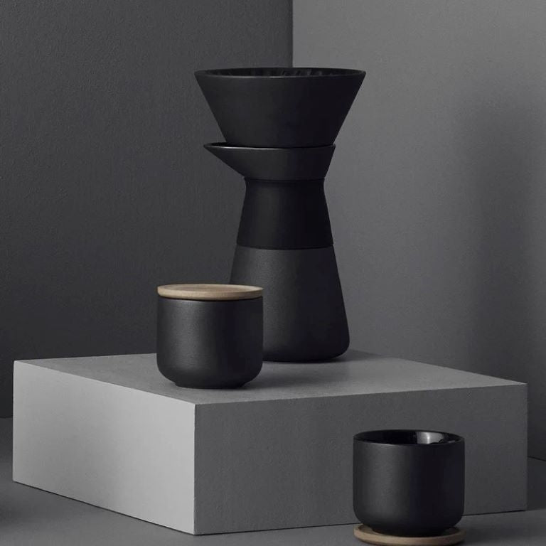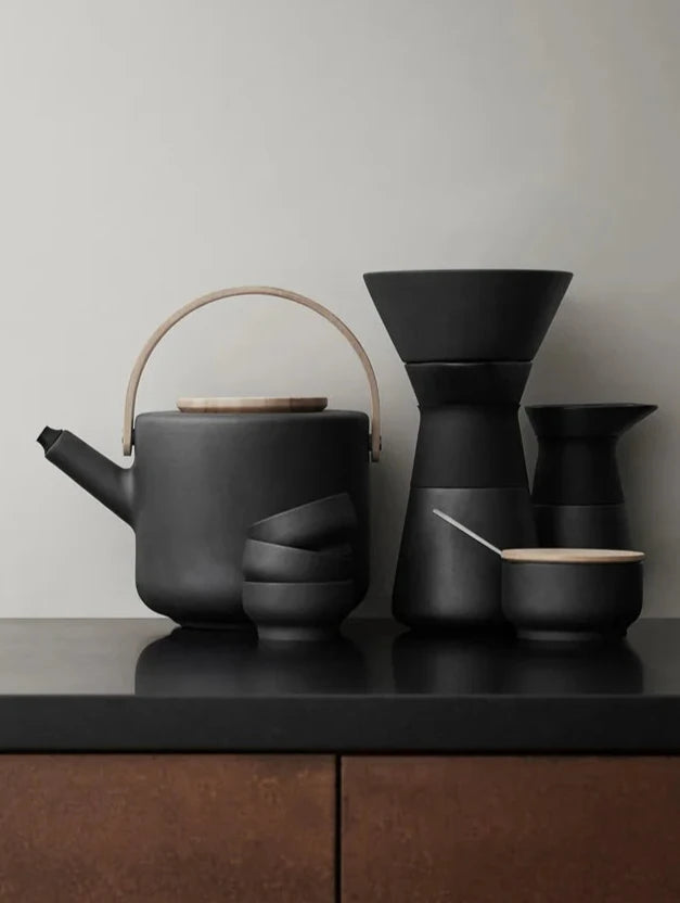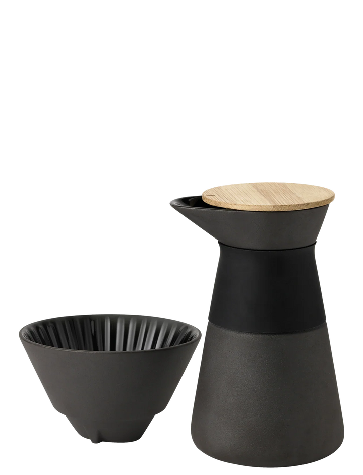 Made in matt black stoneware with a shiny glaze on the inside and a lid in Asian, sustainable bamboo the Theo coffee maker is both rustic and elegant. The filter funnel has three holes at the bottom, so the run-through time is naturally extended. The Theo slow brew coffee maker holds 0.6 l., perfect for 1–2 people.