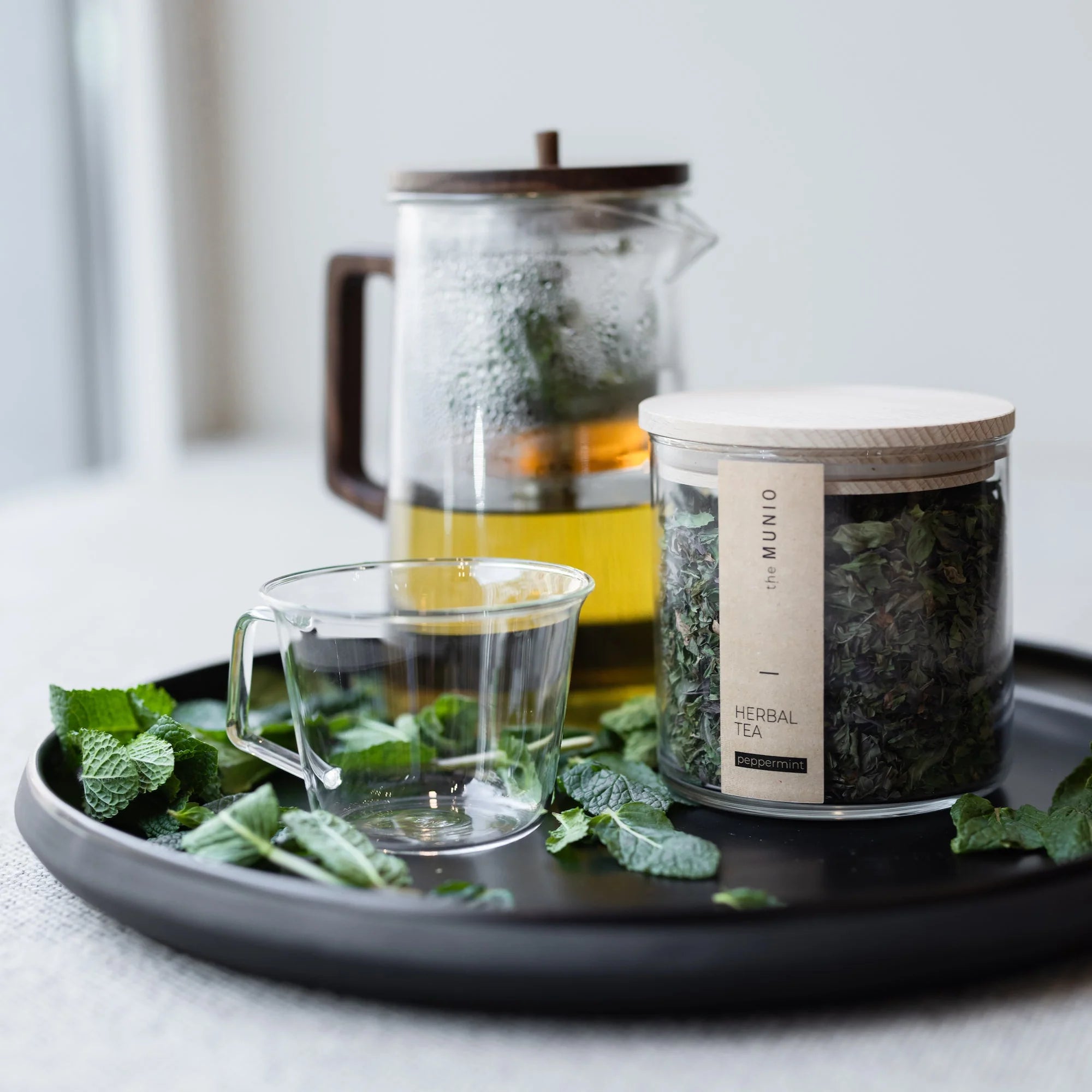 Peppermint Herbal Tea is a pure and refreshing infusion made from 100% peppermint leaves—known for their naturally cooling and invigorating properties. Caffeine-free and crisp in flavor, this tea is perfect for soothing the stomach, clearing the mind, and bringing a burst of freshness to any moment. It pairs beautifully with the Munio home fragrance and skincare products, creating a harmonious and soothing atmosphere in your everyday routine.