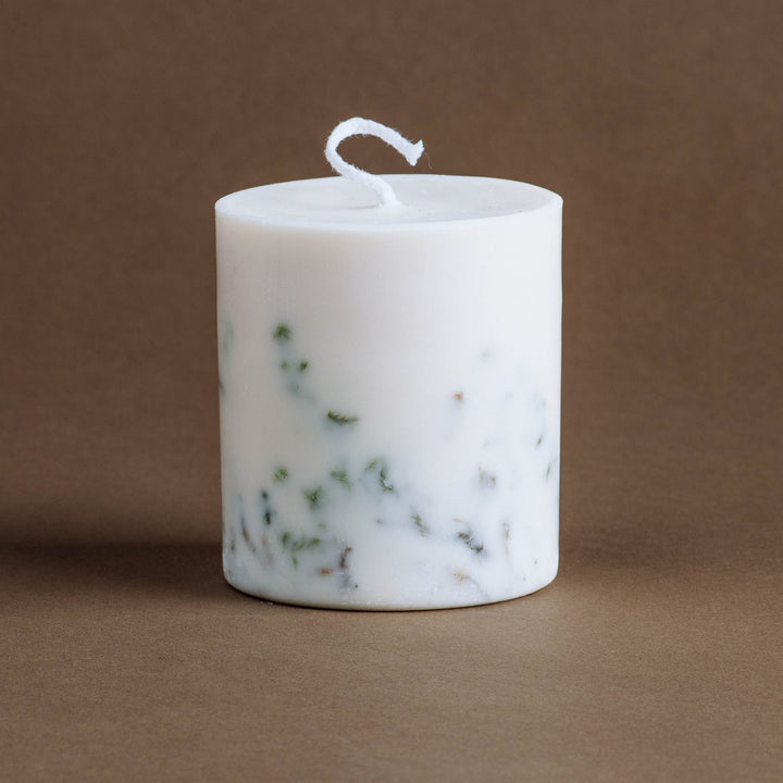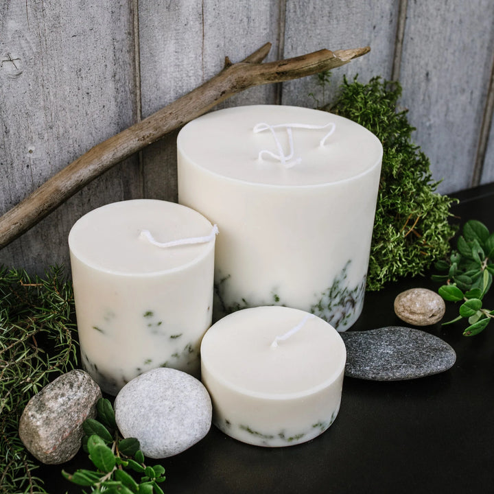 Hand-poured from a natural blend of soy and rapeseed wax, this botanical pillar candle is infused with the earthy scent of natural moss and decorated with dried moss for an authentic, grounding touch. As it burns in a tunnel, the soft glow reveals the botanical textures within—creating a warm, meditative atmosphere inspired by nature.