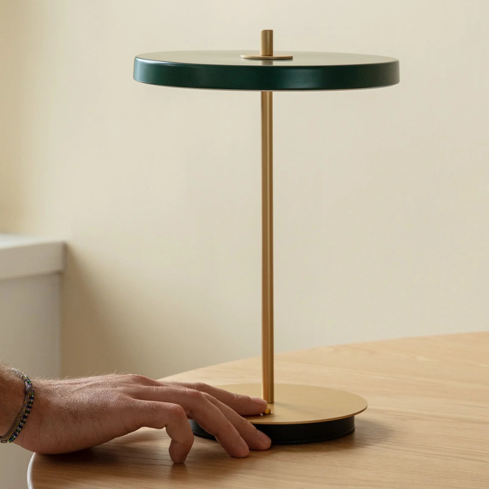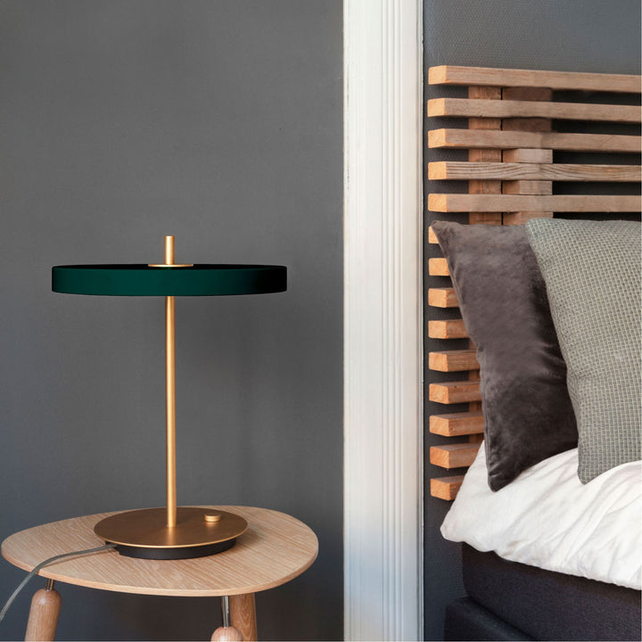 Asteria table lamp has a built-in LED panel with a diffuser ensuring a soft illumination in the room. The brass stem going through the table lamp as a vertical axis reinforces a tight and sleek expression. Asteria table lamp has a hidden USB-port, so you can charge your phone – even when the light is turned off. The lamp is ideal on the desk or as a bedside table lamp but will add elegance to every corner of the home.
