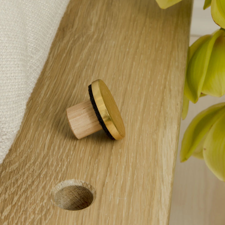 Solid oak, MDF, steel (plated brass) and polyester (Horizons S).
