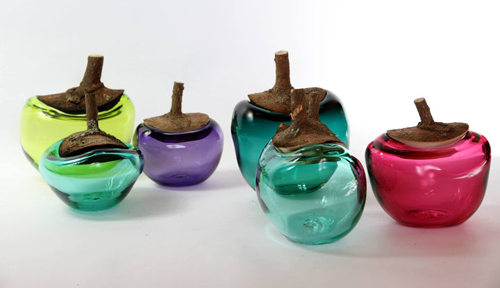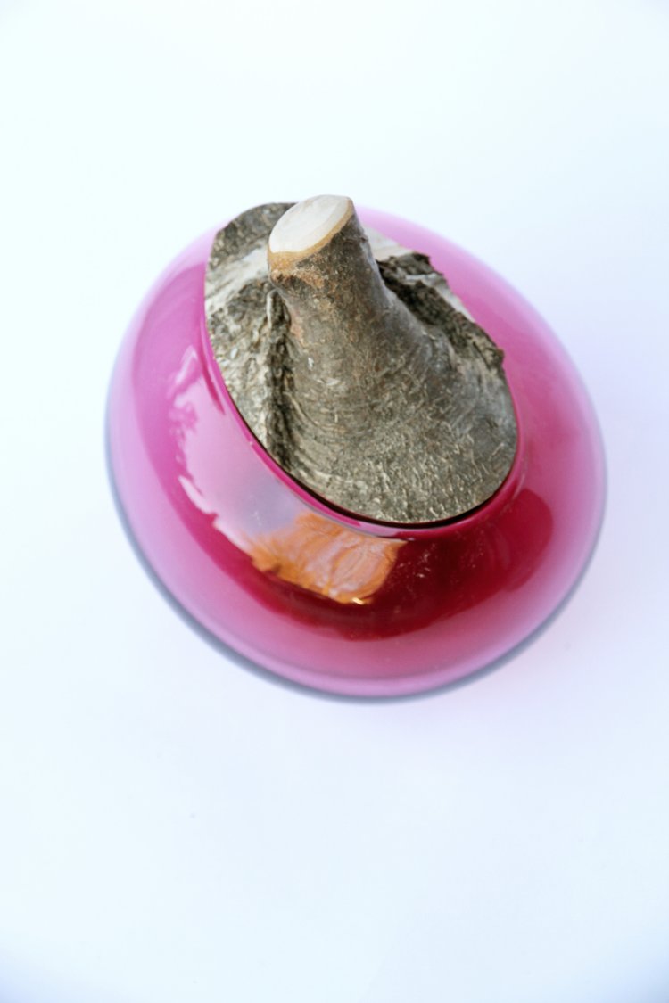 Branch Bowls are blown without a mould: their outer rim is originally the inside of the glass bubble, thus their round and soft edges, characteristic of this artistic process. Each piece is unique, with the wood being fitted to the glass body in our own workshop in North German.